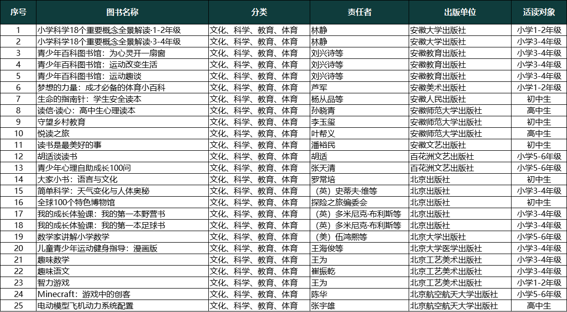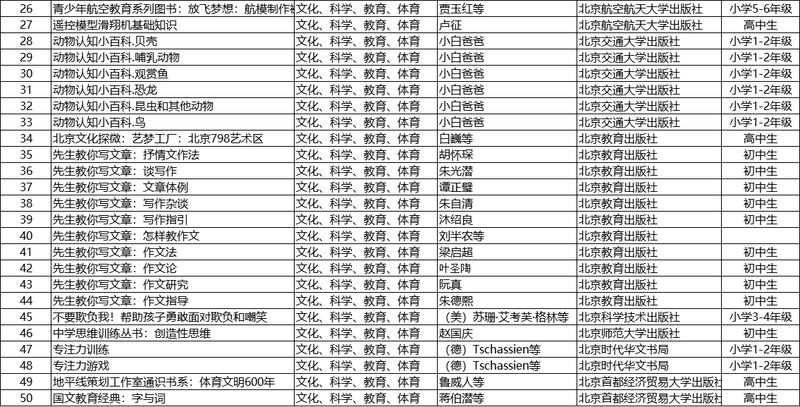 文化、科学、教育、体育类推荐书目