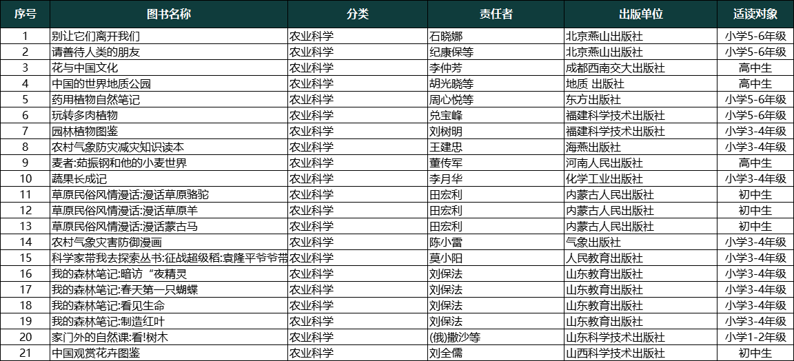 农业科学类推荐书目